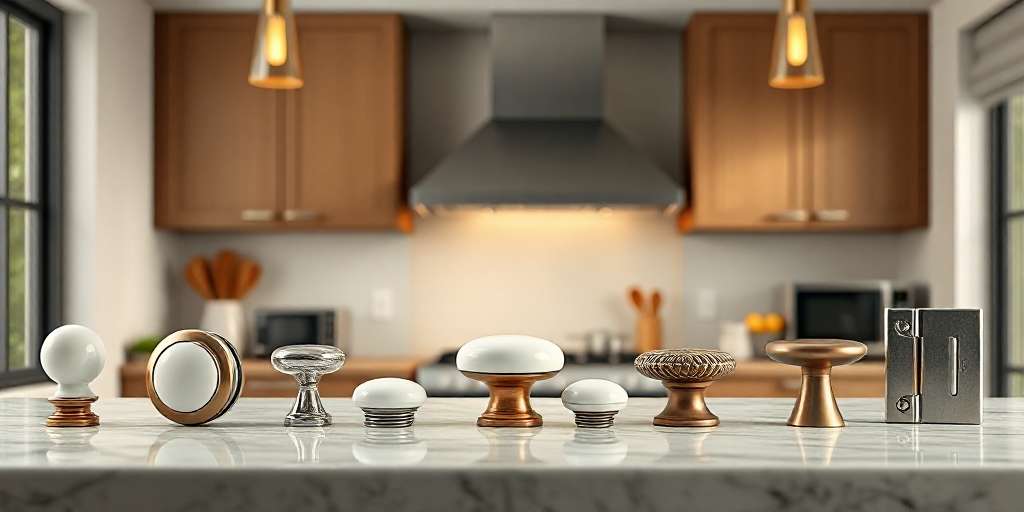 Accesorios de muebles de cocina: tiradores, herrajes, visagras