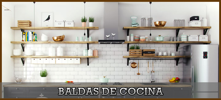 Combinación de armarios y estantes como baldas de cocina